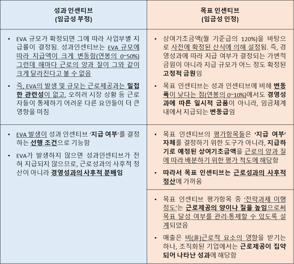 대법원은 아래와 같은 이유로 두 인센티브의 임금성을 다르게 평가했습니다.