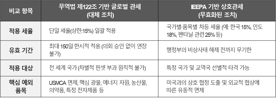 <무역법 제122조 vs IEEPA 관세 비교>