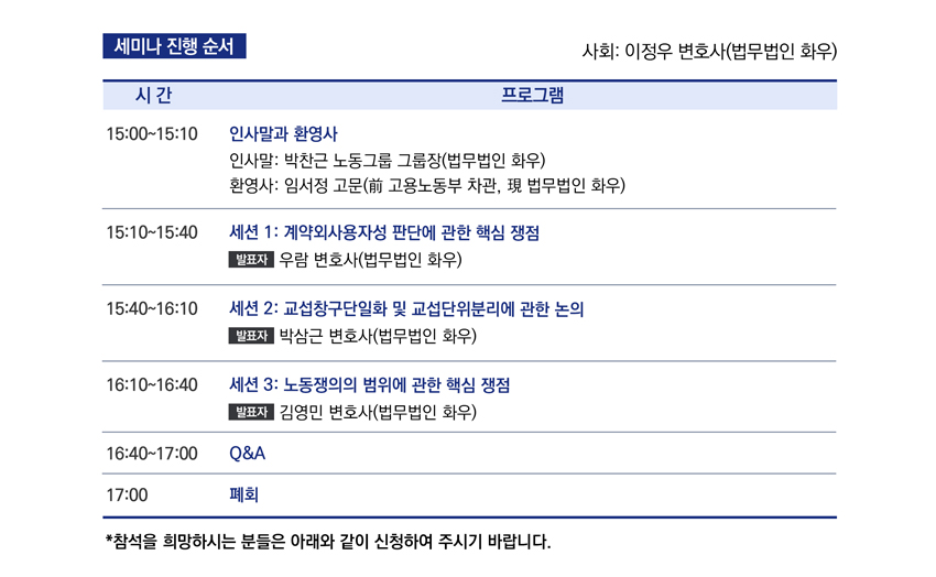노란봉투법 관련 고용노동부 시행령·지침 분석과 기업의 대응방안 세미나
